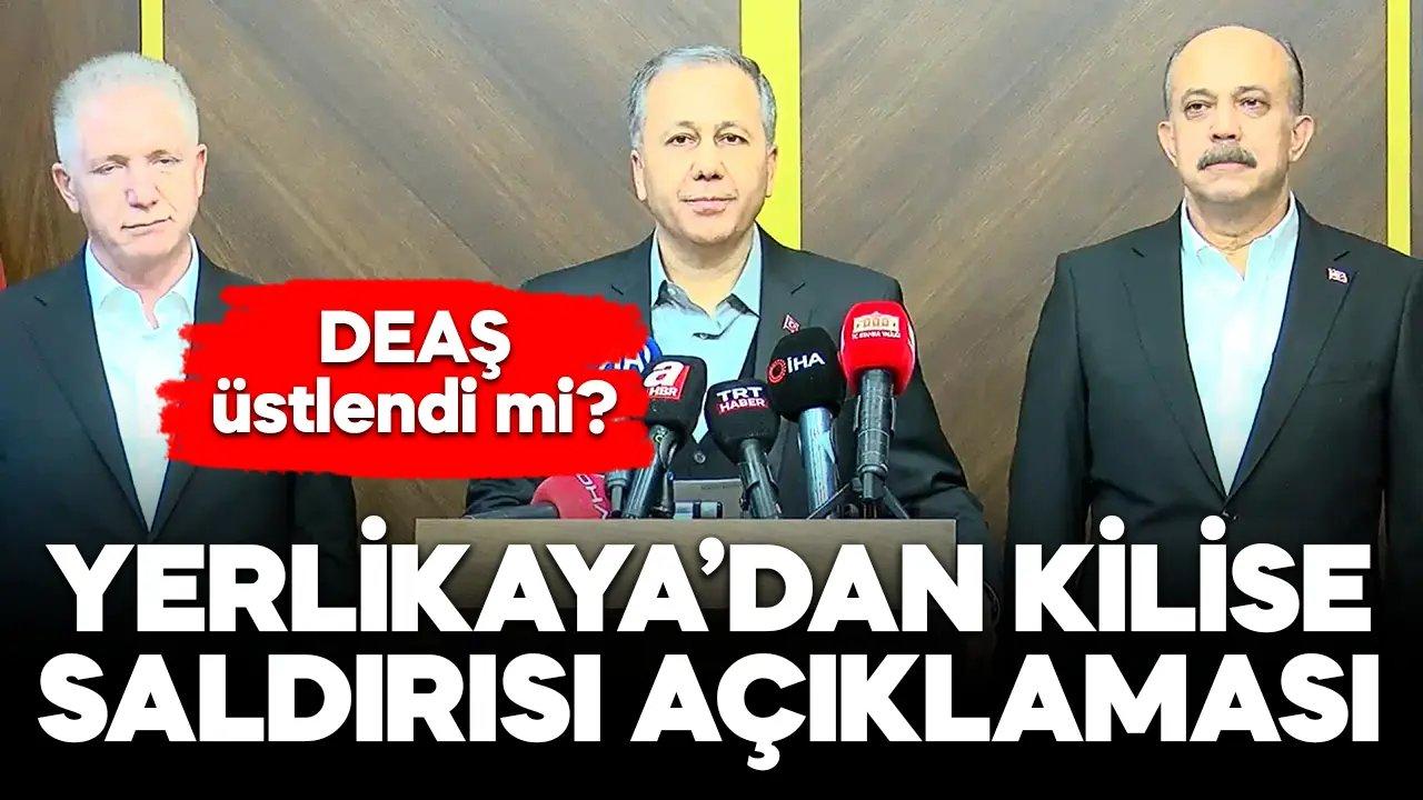 Yerlikaya, "Bildiğiniz üzere bugün Sarıyer Santa Maria Kilisesi'nde pazar ayini sırasında maskeli 2 kişi tarafından düzenlenen silahlı saldırıda Tuncer Cihan isimli vatandaşımız hayatını kaybetmişti. Olayın hemen ardından yaptığımız açıklamada faillerin en kısa sürede yakalanıp adalete teslim edileceğini, yaşanan hadiseyi şiddetle kınadığımızı belirtmiştik. Menfur saldırı sonrası İstanbul Emniyetimiz çok hızlı ve kapsamlı bir çalışma başlattı. Gün boyu emniyet güçlerimiz 30 ayrı adrese baskın düzenledi ve şuana kadar 47 şahıs gözaltına alındı. Son olarak ise saat 22.00 sıralarında belirlenen adrese yapılan baskında cinayet zanlısı her 2 şahıs da yakalandı. Zanlıların her ikisinin de yabancı uyruklu olduğunu ifade etmek istiyorum. Biri Tacikistanlı, diğeri Rusyalı olan bu iki yabancı uyruklu DEAŞ'lı olduklarını değerlendiriyoruz" şeklinde konuştu.