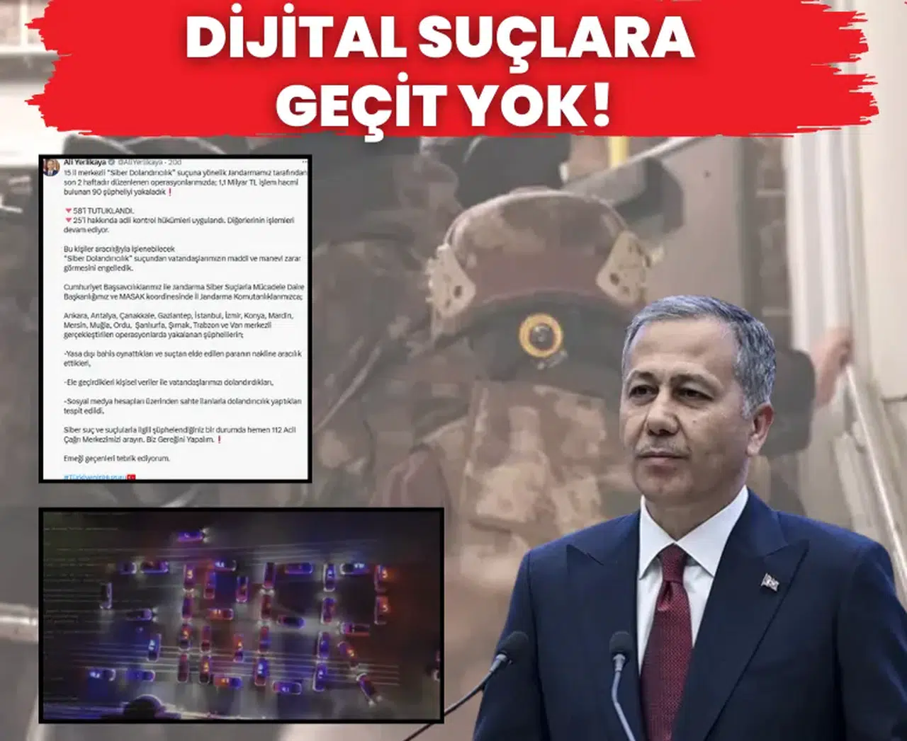 İçişleri Bakanı Ali Yerlikaya’nın kamuoyuyla paylaştığı bilgilere göre, 15 il merkezli eş zamanlı siber dolandırıcılık operasyonlarında büyük bir suç ağı çökertildi. Cumhuriyet Başsavcılıkları ile Jandarma Genel Komutanlığı Siber Suçlarla Mücadele Daire Başkanlığı ve MASAK koordinasyonunda yürütülen operasyonlar; Ankara, Antalya, Çanakkale, Gaziantep, İstanbul, İzmir, Konya, Mardin, Mersin, Muğla, Ordu, Şanlıurfa, Şırnak, Trabzon ve Van’da gerçekleştirildi.