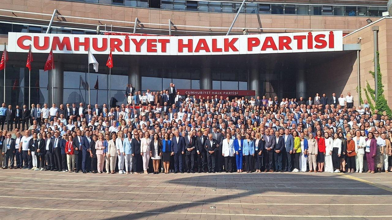 ATO Congresium'da gerçekleştirilen "İkinci Yüzyıl Değişim Kurultayı'nın 3'üncü günü programı sonrası Kurultay üyeleri, parti genel merkezine geçti. CHP Genel Başkanı Özgür Özel, genel merkez önünde Kurultay delegeleri ile fotoğraf çektirdi.