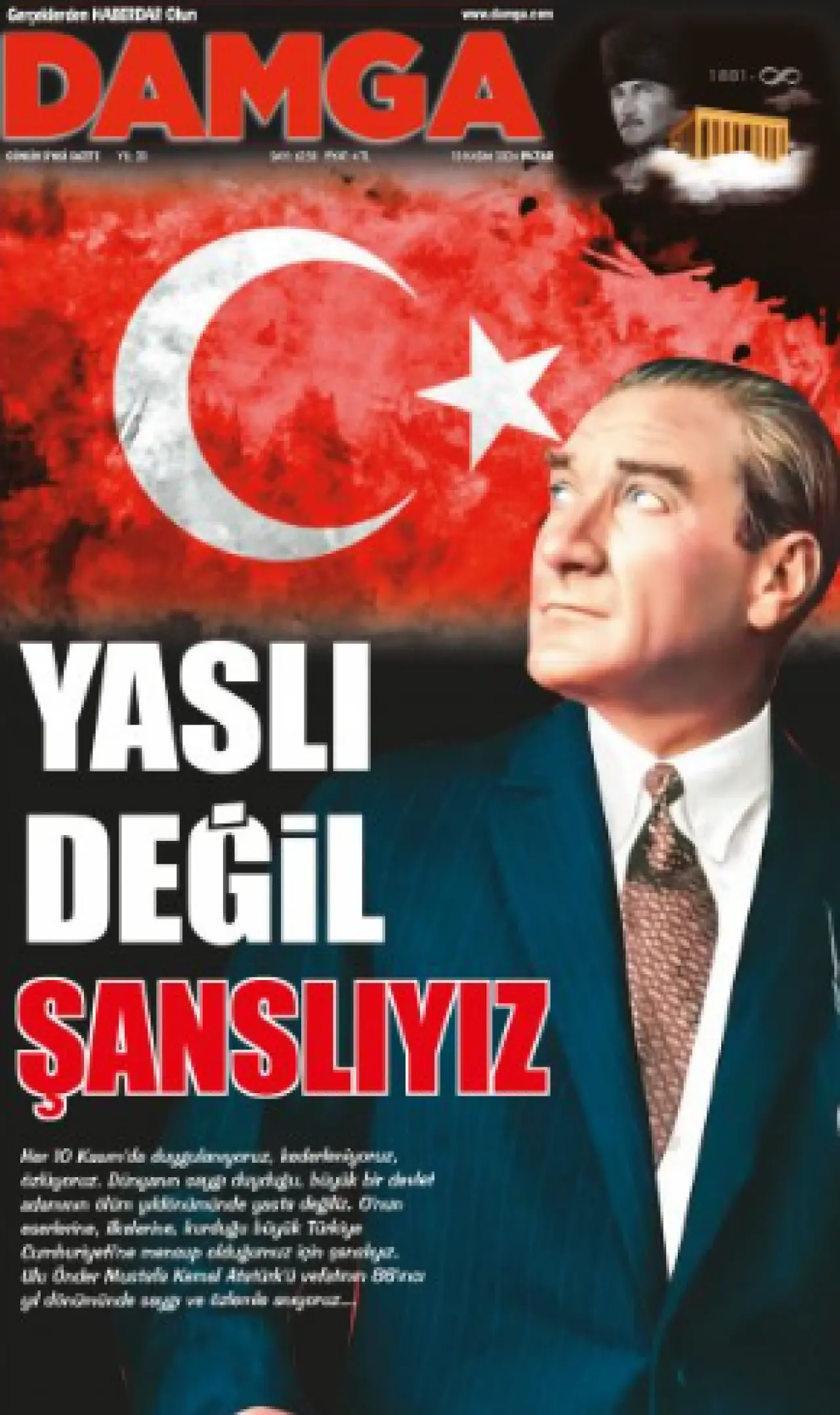 Ayrıca, 10 Kasım’da dikkat çeken bir diğer ayrıntı da Damga gazetesinin kapak sayfasının tamamını Atatürk’e ayırması oldu. Tüm gazeteler arasında özel bir anma hazırlayan Damga, 10 Kasım’ı kapaktan hatırlatarak Atatürk’e olan saygısını güçlü bir şekilde ifade etti. Diğer gazetelerin aksine bu tavrı sergileyen Damga, sosyal medyada da takdir topladı.
