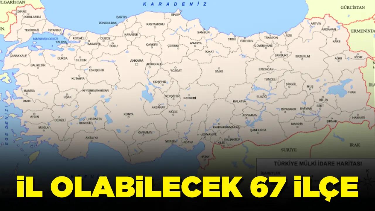 İl olma potansiyeli yüksek 67 ilçe ise şöyle: