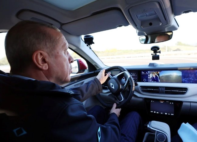 Cumhurbaşkanı Erdoğan, Togg'un seri üretiminin yapılacağı Gemlik Kampüsü gezdikten sonra Togg aracını test etti.