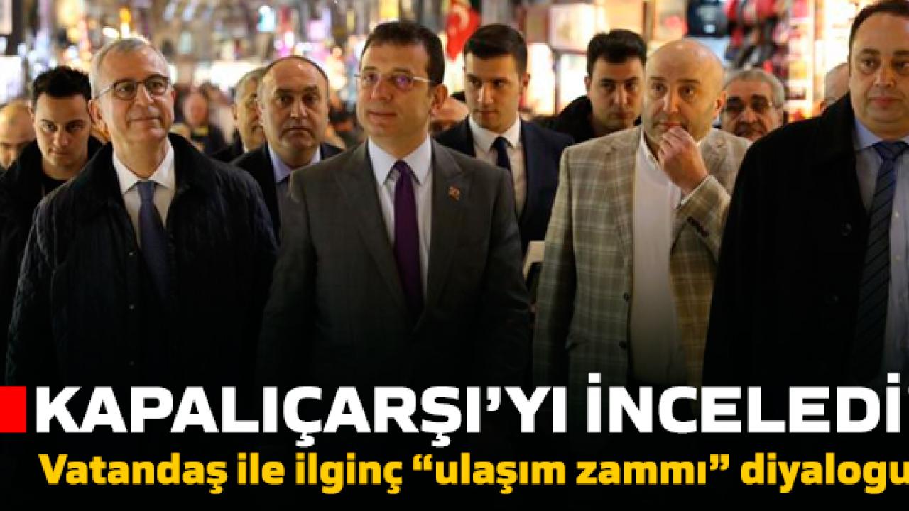 İmamoğlu’nun Kapalıçarşı gezisine, bir vatandaşla yaşadığı “ulaşım zammı diyalogu” damga vurdu. Ulaşıma yapılan yüzde 35’lik zammı protesto eden vatandaş, İmamoğlu’na, “3 yıldır yapılamayan zammı neden yaptınız” diyerek bağırdı. Sese doğru yönelen İmamoğlu ile vatandaş arasında şu ilginç diyalog yaşandı: