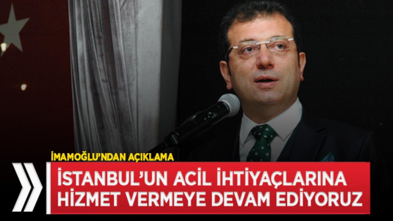 İstanbul Büyükşehir Belediyesi Başkanı Ekrem İmamoğlu, “Farklı birimlerimizin, farklı uygulamalarıyla beraber bütün hemşerilerimize hizmete başladık. 153 çağrı hattımız, bütün İstanbul’un acil ihtiyaçlarına hizmet vermeye devam ediyor. Gördüğünüz bir eksikliği ya da yaşadığınız bir sıkıntıyı bize ulaştırabilirsiniz” dedi.