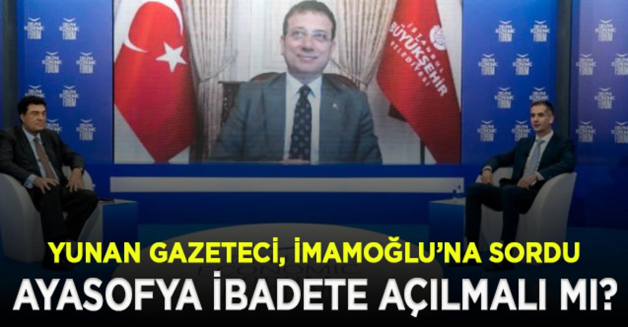 Katıldığı panelde İmamoğlu'na, Ayasofya'nın ibadete açılması konusu hakkındaki düşüncesi soruldu. Gazeteci Alexis Papachelas, İmamoğlu'na "Ayasofya ibadete açılmalı mı? Konuyla ilgili düşünceleriniz nedir?" şeklinde soru sordu.