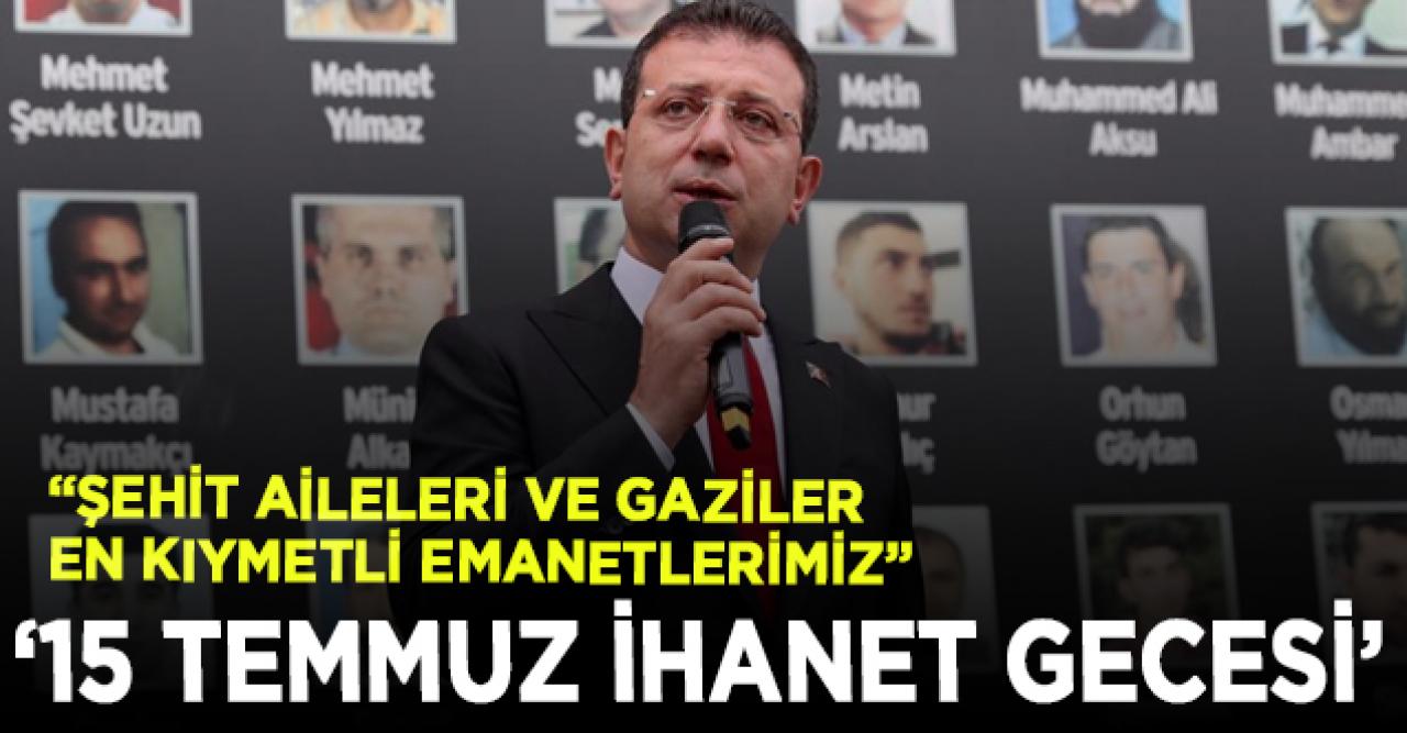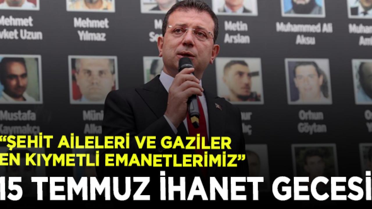 “Bu ders çıkarımıyla; her zaman hatırlanması, her zaman ders çıkarılması ve ona göre geleceğe bakabilme noktasında prensipler oluşturulması noktasında en önemli günlerden birisidir 15 Temmuz Türkiye Cumhuriyeti tarihinde” diyen İmamoğlu, “Bu manada bugün burada, tam bu noktalarda hayatını kaybeden büyükşehir belediyemizin içinde kadrosunda olan her vatandaşımızı rahmetle minnetle anıyorum; ruhları şad olsun. Tabi aynı zamanda sadece burada değil, Türkiye’nin farklı noktalarında, o ihanet gecesi terör örgütü ele başı ve onun güdümünde olan insanların ortaya koydukları bu eylemle hayatını kaybeden tüm şehitlerimizi de rahmetle, minnetle anıyorum. Ruhları şad olsun. Umut ediyorum ki, hiçbir zaman bir daha böylesi bir gün ülkemiz, milletimiz yaşamasın. Ben bu duygularımla bunu söylerken, şunu da ifade etmek istiyorum: 15 Temmuz şehitlerimizin, gazilerimizin aileleri, çocukları evlatları, her zaman kurumsal olarak da bizim en kıymetli emanetlerimizdendir. Onun da altını özellikle çizmek istiyorum” ifadelerini kullandı.