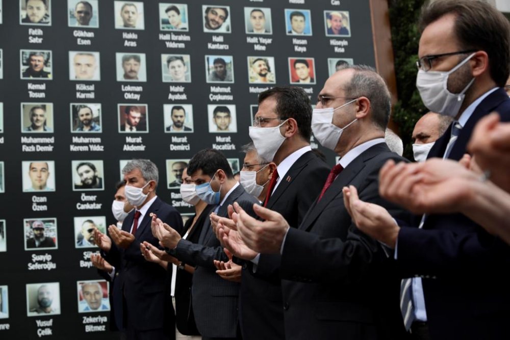 15 Temmuz 2016 gecesi gerçekleştirilen hain darbe girişiminde yaşamını yitiren 251 şehit, İstanbul Büyükşehir Belediyesi’nin (İBB) Saraçhane’deki merkez binası önünde anıldı. “Şehitler Panosu” önünde gerçekleştirilen anmaya; İBB Başkanı Ekrem İmamoğlu, İBB Meclis üyeleri, İBB üst yönetimi ve vatandaşlar katıldı. Şehitler için saygı duruşunda bulunulması ve İstiklal Marşı’nın okunmasıyla başlayan anmada, Kur’an tilavetiyle devam etti. Edilen duaların ardından bir konuşma yapan İmamoğlu, “İstanbul’un ve Türkiye Cumhuriyeti’nin bir daha hiç yaşamak istemediği bir anı ve bir noktayı hep beraber hissediyoruz. Bu hissiyatımızı derinleştirmek, böylesi bir tehdidi, böylesi bir ihaneti toplumun, devletin, milletin bir daha hiç yaşamaması adına alınması gereken tedbirleri, daha iyi, daha sıkı bir şekilde devreye alınması noktasında taze tutmak hepimizin boynunun borcudur” dedi.
