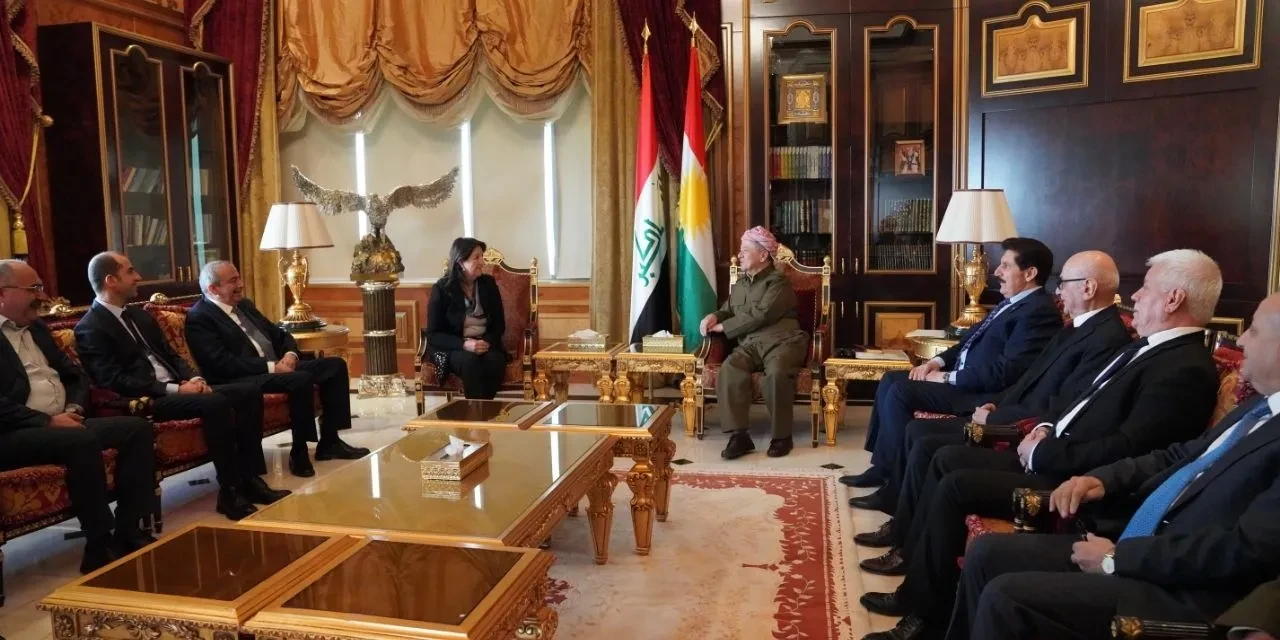 DEM Parti’nin İmralı Adası’ndaki görüşmelerine katılan heyet, Erbil’de KDP Başkanı Mesut Barzani ile buluştu. Görüşme, Kürdistan Bölgesel Yönetimi’nin Pirman ilçesinde bulunan Barzani’nin ofisinde yaklaşık 1 saat 45 dakika sürdü.