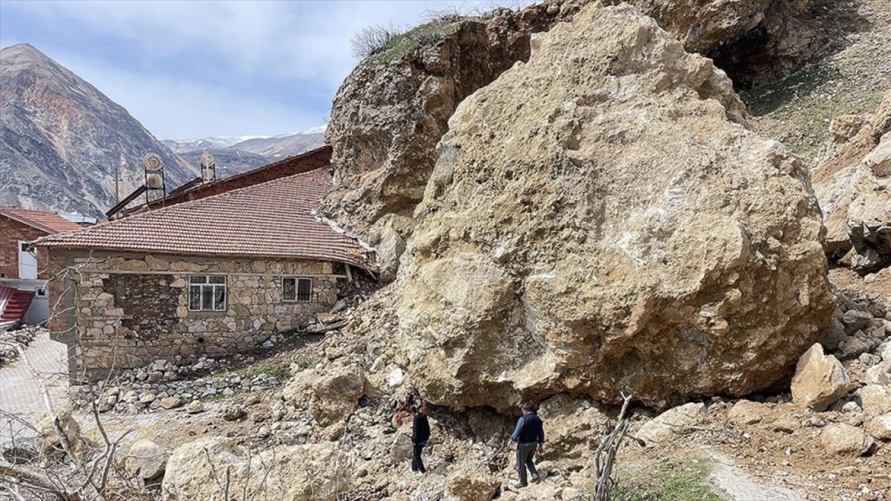 Köyün, fay hattının geçtiği arazilerinde oluşan yarıklar ve dağdan kopan dev kayalar, depremin boyutunu gözler önüne seriyor.