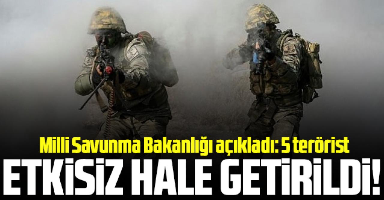 Milli Savunma Bakanlığı yaptığı açıklamada 5 teröristin etkisiz hale getirildiğini duyurdu.