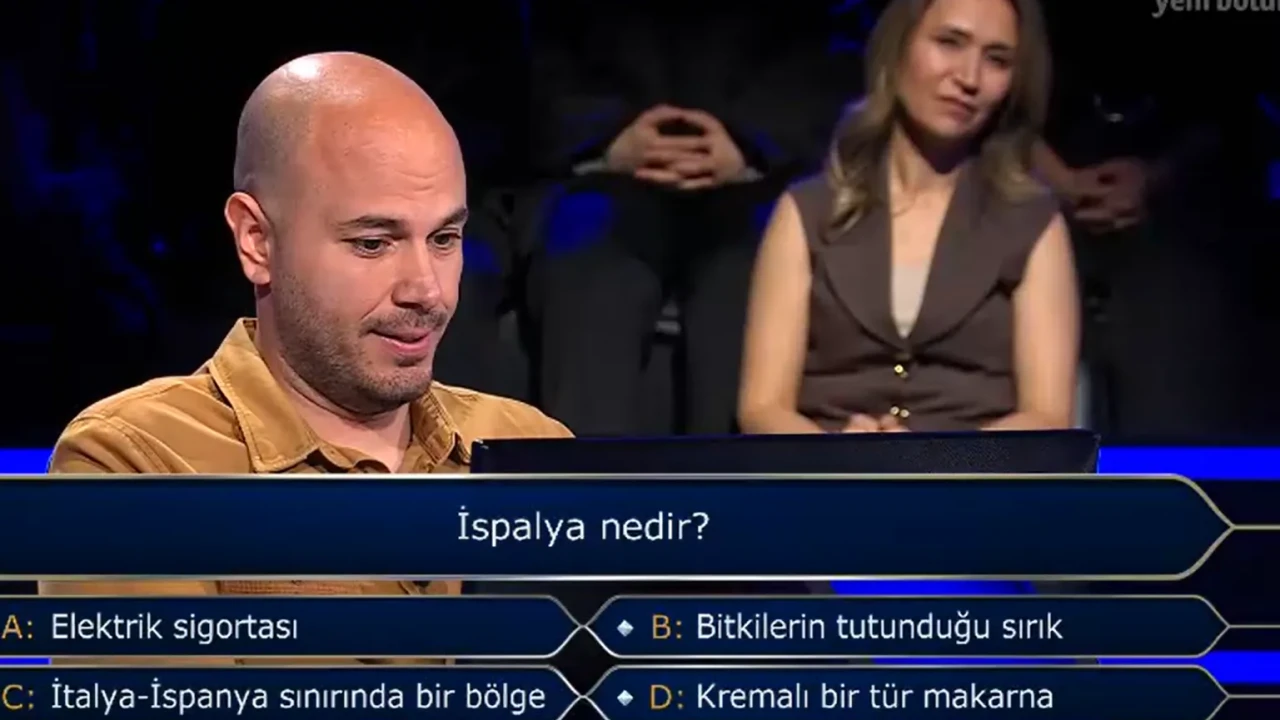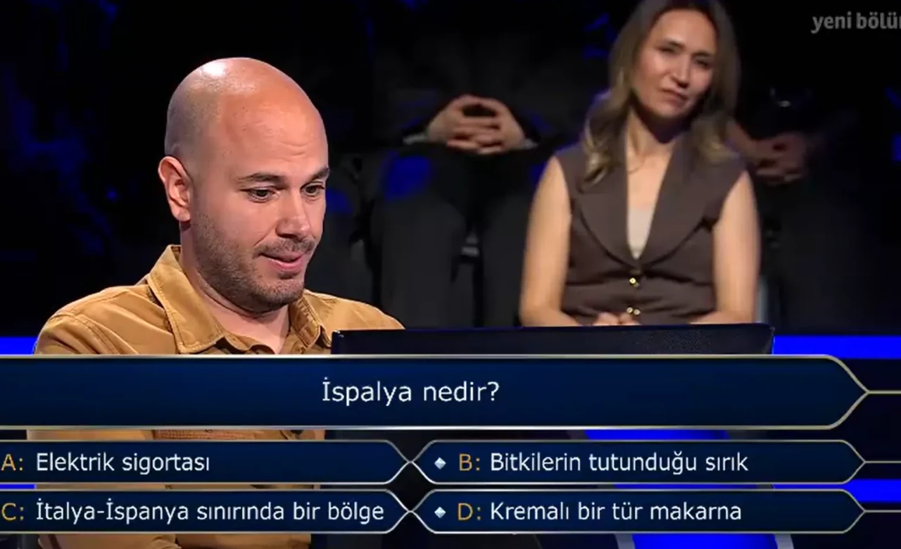 Görüntüde, “Kim Milyoner Olmak İster?” yarışmasından bir kare yer almakta. Yarışmacıya yöneltilen soru şu: