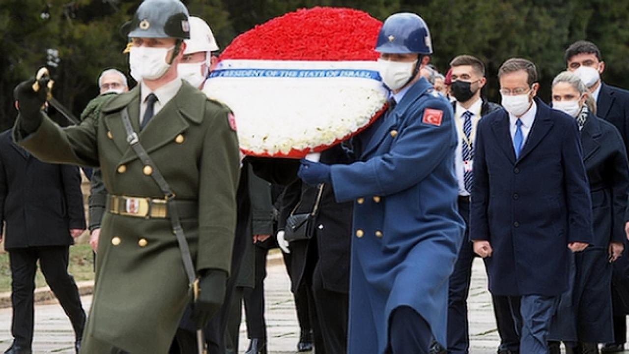 İsrail Cumhurbaşkanı Isaac Herzog, beraberindeki heyetle Anıtkabir'i ziyaret etti. Cumhurbaşkanı Herzog, Aslanlı Yol'dan yürüyerek Atatürk'ün mozolesine çelenk bırakıp, saygı duruşunda bulundu. Daha sonra Misak-ı Milli Kulesi'ne geçen Herzog, Anıtkabir Özel Defteri'ni imzaladı.