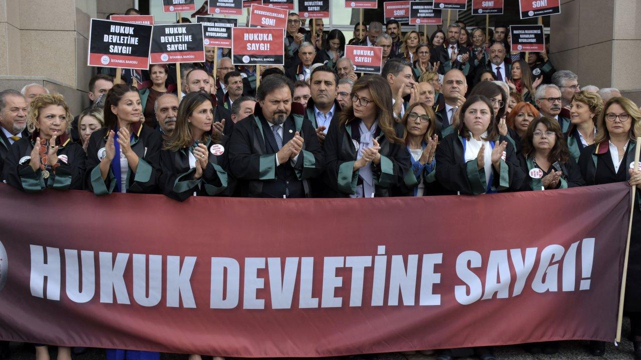 Konuşmaların ardından avukatlar "Hukuk devletine saygı" pankartları kaldırdı.