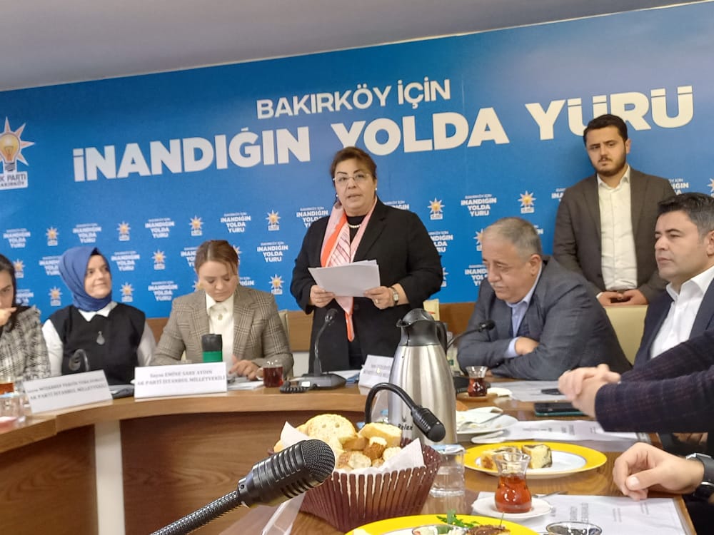 AK Parti İstanbul İl Başkanlığının başlattığı “Yüz Yüze 100 Gün” programı Bakırköy’de devam etti. Bakırköy İlçe Başkanı Tülin Mazlumoğlu Kestane’nin organize ettiği programa Siyasi ve Hukuki İşler Başkanı İl Başkan Vekili Adem Yıldırım, İnsan Hakları Başkanı İl Başkan Vekili Yıldız Konal Süslü, Milletvekilleri Rümeysa Kadak, Tülay Kaynarca, Mücahit Arınç, KADEM Kurucu Başkanı Doç. Dr E. Sare Aydın, Osman Boyraz, Nevzat Şatıroğlu, Müşerref Pervin Tuba Durgut, Fatih Süleyman Deniz Olgun, Hulisi Şentürk, il ve ilçe meclis üyeleri katıldı. "Yüz Yüze 100 Gün" programı kapsamında geçtiğimiz günlerde belediye başkanlarının geldiği Bakırköy’e, bu kez milletvekilleri geldi. Program öncesi ilçe başkanlık binasında bölgede yayın yapan gazetecilerle bir araya gelen vekiller, karşılıklı fikir alışverişinde bulunarak, il, ilçe ve ülke gündemine yönelik değerlendirmeler yapıldı.