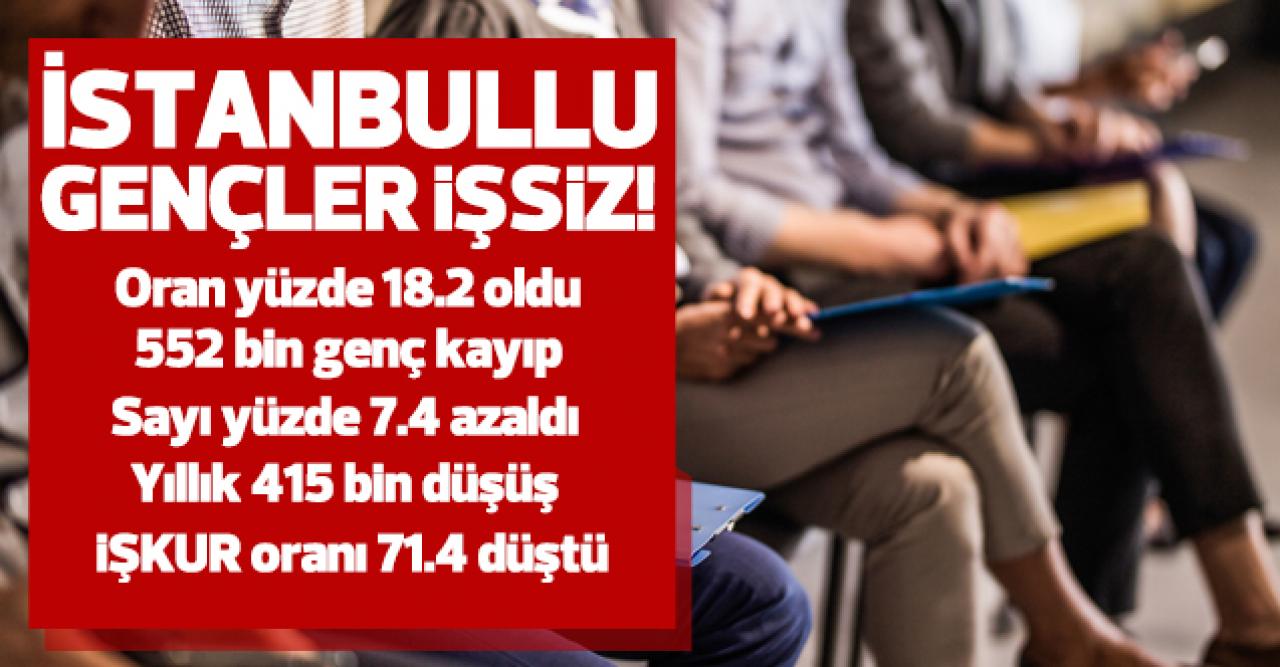 15-24 yaş aralığında olup eğitim almayan ve herhangi bir işte çalışmayan gençlerin sayısı 2019 yılında 579 bin iken 2020 yılında 552 bine geriledi. 15-24 yaş aralığındaki kişilerde resmi işsizlik oranı, İstanbul’da yüzde 25.6, Türkiye’de yüzde 25.3; geniş tanımlı işsizlik ise İstanbul’da yüzde 30, Türkiye’de yüzde 39.5 olarak ölçüldü.