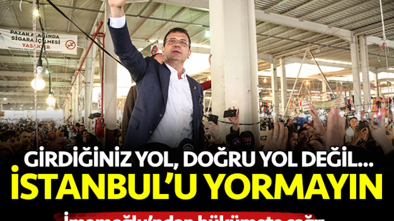 Bir haftadan beri geçersiz oyların sayımının devam ettiğini, oyların yüzde 78'inin sayıldığını ve farkın 16 bin 380 olduğunu belirten İmamoğlu, “Bu süreçte kaybeden AK Parti'nin İstanbul İl Teşkilatını anlıyorum. Genel merkezdeki bazı arkadaşları anlıyorum onlar da bedel ödeyecekler. Yormayın bu toplumu” dedi. “Bir an önce bu seçimin bitmesi lazım. Girdiğiniz yol doğru bir yol değildir” diyen İmamoğlu, “Devlet büyüklerimize sesleniyorum, 2023'ün Haziran'ına kadar yetki alanlara sesleniyorum. Ben İstanbul'u çok iyi yöneteceğim. Ben bu şehri barıştırmaya geliyorum. İstanbul'un aleyhine bir şey düşünebilir miyim?” diye sordu.