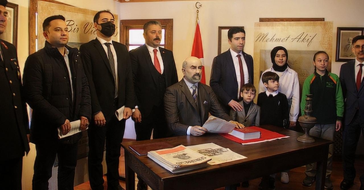 İkinci tören ise Mehmet Akif Ersoy Evi ve Müzesi’nde yapıldı. İstiklal Marşı'nın 12 Mart 1921 tarihinde TBMM’de kabul edilişinin, sokakta gazete dağıtan çocuğun 'yazıyor yazıyor' diye halka duyurması canlandırıldı. Daha sonra İstiklal Marşı'nı Güzel Okuma Yarışması'nın okul öncesi eğitimi kategorisi birincisi Mehmet Akif Ersoy İlkokulu ana sınıfı öğrencisi Emirhan Atak, ilkokullar kategorisi birincisi Mehmet Akif Ersoy İlkokulu öğrencisi Egehan Göde, ortaokullar kategorisi birincisi Bayramiç Gazi Ortaokulu öğrencisi Elanur Karaman, liseler kategorisi birincisi Bayramiç Anadolu İmam Hatip Lisesi öğrencisi Zeynep Süeda Köseoğlu, dramatik anlatıyla İstiklal Marşı'nı okudu.