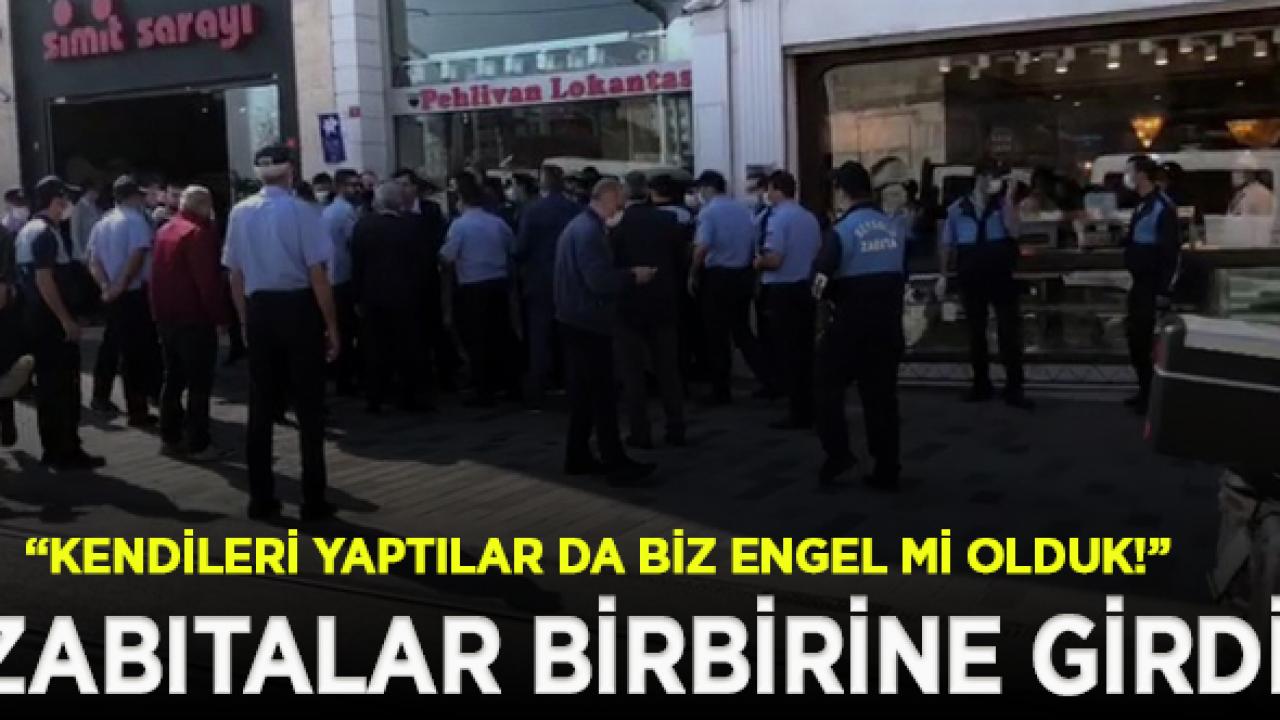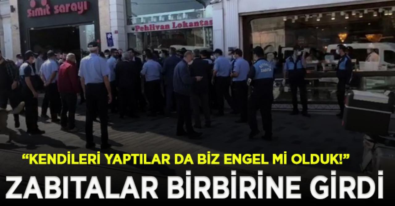 İBB ekipleri arasında yaşananları anlatan Beyoğlu Belediyesi Başkan Yardımcısı Rüstem Dindarol, “Burada olma nedenimiz; Beyoğlu Belediyesinin pandemi süreciyle ilgili yapmış olduğu hizmet var. İnsanlara maske dağıtıyoruz, ateşlerini ölçüyoruz, dezenfekte konusunda yardımcı olmaya çalışıyoruz. 2 aydır bu hizmeti yapıyoruz. İstiklal Caddesi demek Beyoğlu demektir, ikisi birlikte anılır. Cumartesiden itibaren İBB başkanı ve zabıta ekipleri ilgili birimler, burada bu hizmeti yapmamızın önüne geçmek istiyorlar. Engellemek istiyorlar bizim gördüğümüz bu, burada bir olay yaşandı. Neden tramvayın geçişine engel oluyor? Bunun üzerine üst tarafı söktük, pazartesiden itibaren burada tramvay işlemeye devam ediyor. Dün gece saat. 03.00 sıralarında kanunsuz bir şekilde cebren ve zorla İBB ekipleri, vinçlerle araçlarla birlikte ciddi bir kalabalıkla, hiç kimsenin olmadığı, hiçbir şekilde bizim belediyemizin herhangi bir kurumuna bir tebliğ yok. Bizim personelimize müdahale ediyorlar ve kaldırıyorlar. Bundan rahatsız oldular, kendileri yaptılar da biz engel mi olduk, hayır” dedi.