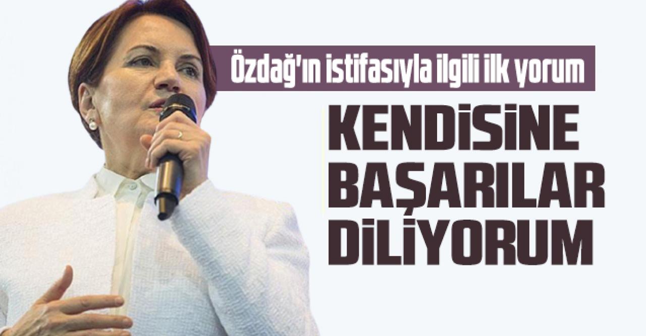İYİ Parti Genel Başkanı Meral Akşener ise ortalığı karıştıran istifa sonrası ilk açıklamasında İstanbul Milletvekili Ümit Özdağ için "Hayatta başarılar diliyorum. Bu an itibariyle yollar ayrılmış olduğu için, prensibimdir benim ayrı bir yol tutan hiçbir siyasiyi peşinen suçlamak hakaret etmek gibi bir tavrım bugüne kadar hiç olmamıştır. Şimdi milletimiz her şeyi tartacak. Hakem, millettir. Hep birlikte göreceğiz." dedi.