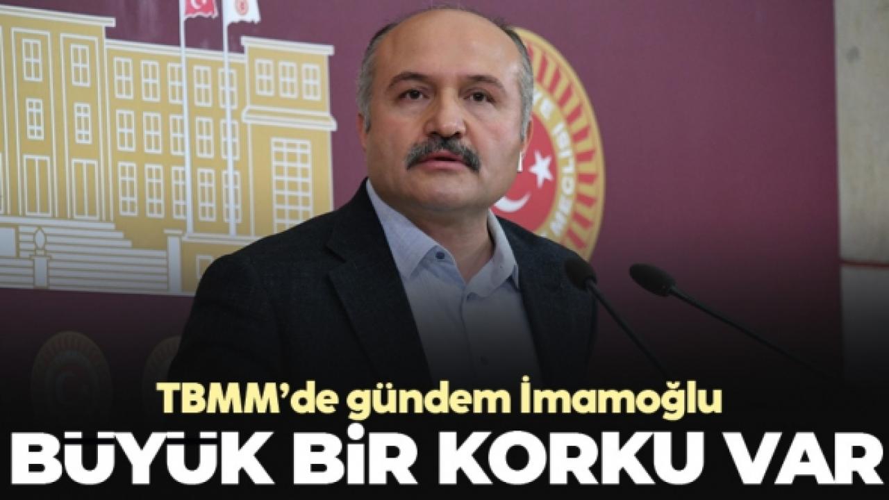 İYİ Parti Grup Başkan Vekili Erhan Usta, "Yıllar önce okuduğu bir şiirle mahkum olan, o günün mağdurları, yıllar sonra bugün gücü eline geçirince mağrurlaşıyorsa 20 yıllık iktidarınızda bir arpa boyu yol alamamışsınız demektir. Sayın İmamoğlu için alınan kararın arkasında demokrasi ve millet iradesine karşı duyulan büyük bir korku vardır. Korku çoğaldıkça zulüm artar, ceza artar, haksızlık artar. Siz korkabilirsiniz ama biz korkmuyoruz. Siz muhalefet ve millet üzerinde korku iklimi yaratmaya çalıştıkça biz daha gür sesle ‘Kahrolsun istibdat, yaşasın hürriyet’ diye haykırmaya devam ediyoruz” dedi.