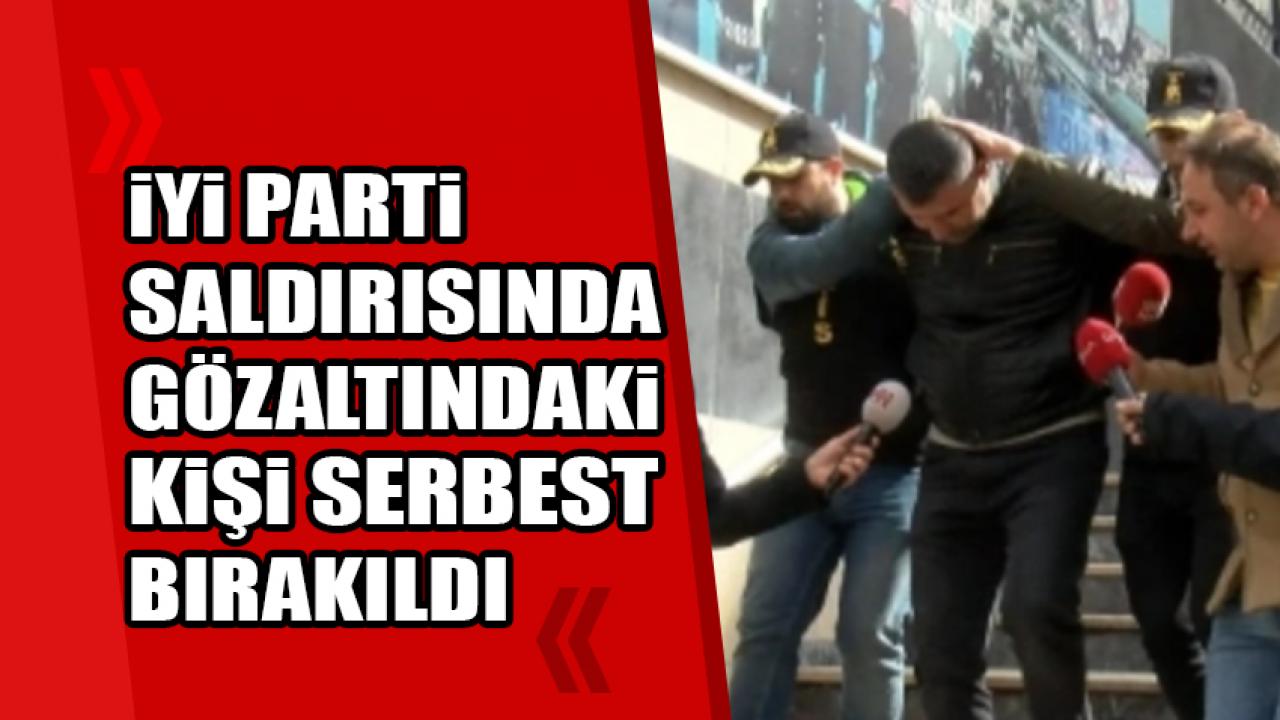 DHA- Zeytinburnu'nda bulunan İYİ Parti İl Başkanlığı'na dün gerçekleşen saldırıda adliyeye sevk edilen şüpheli şahıs savcılık sorgusunun ardından serbest bırakıldı.