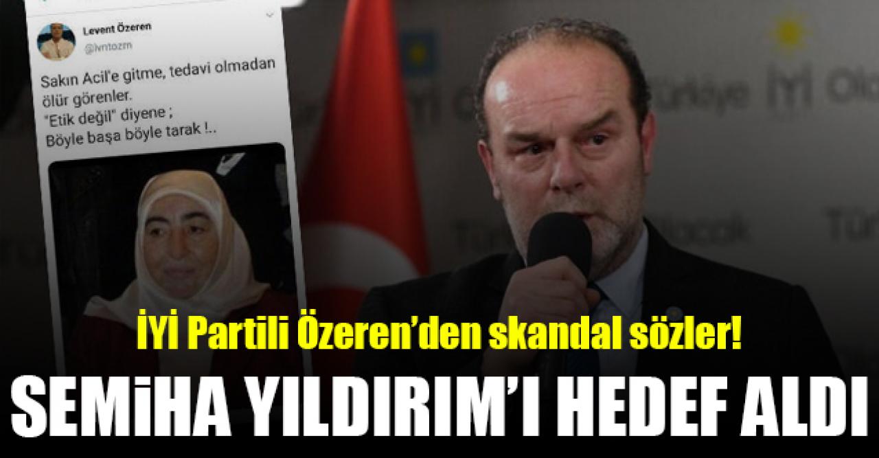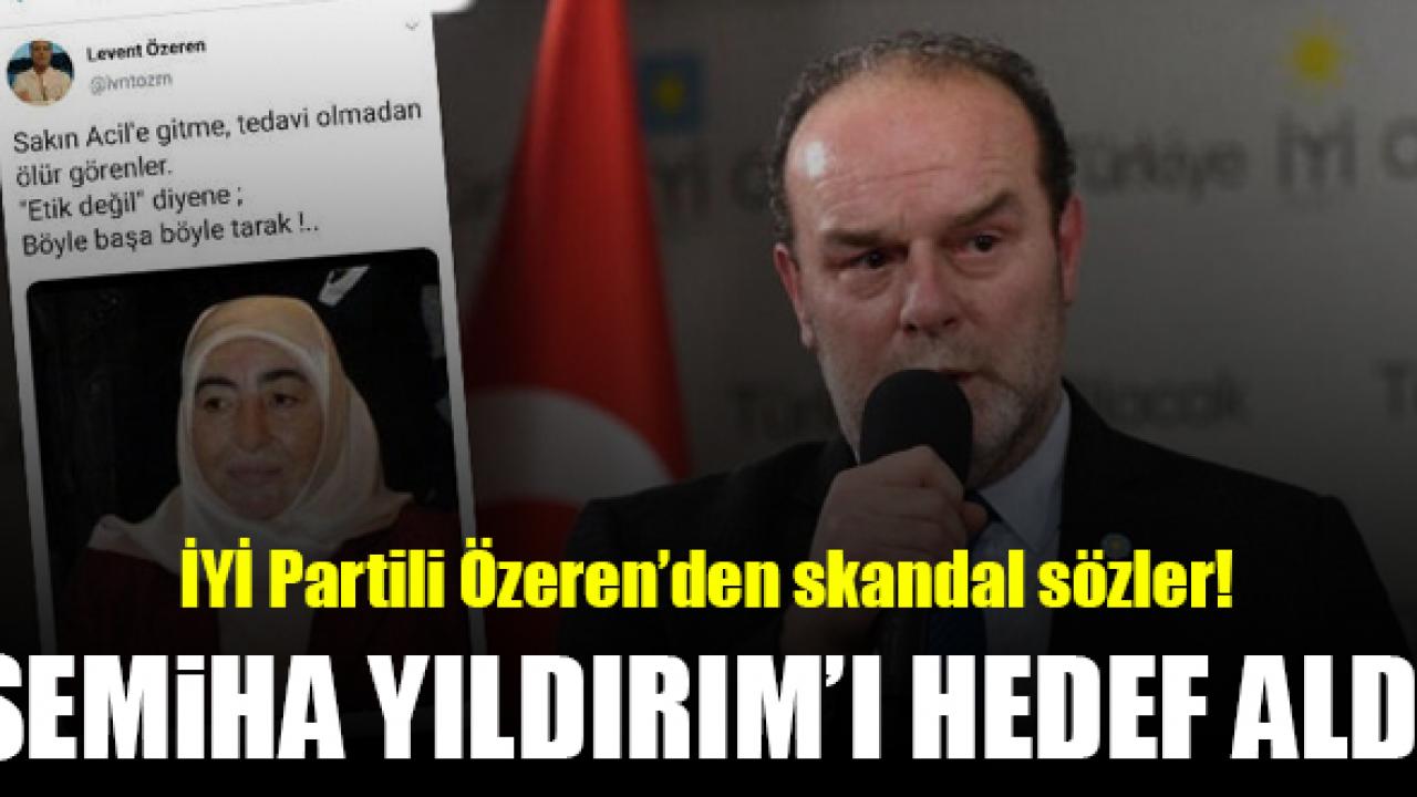 Sosyal medya üzerinden yaptığı bir paylaşımda İYİ Partili Levent Özeren, Binali Yıldırım'ın eşi Semiha Yıldırım hakkında çirkin sözler sarf etti.