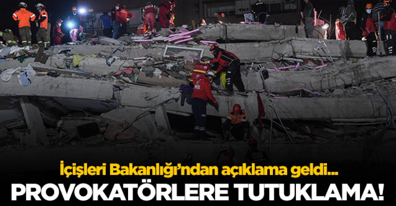 Gelen son dakika haberinde İçişleri Bakanlığı, ''İzmir ve çevre illerde meydana gelen deprem üzerinden bölge halkına yönelik aşağılayıcı, tahkir ve tezyif edici paylaşımlarla halkın bir kesimini diğer bir kesimi aleyhine düşmanlığa veya kin beslemeye alenen tahrik ettiği değerlendirilen 83 paylaşıma rastlanılmış, bu paylaşımlardan; 66 kişi tespit edilmiş, 30’u gözaltına alınmış, 3’ü tutuklandı.'' açıklamasında bulundu.