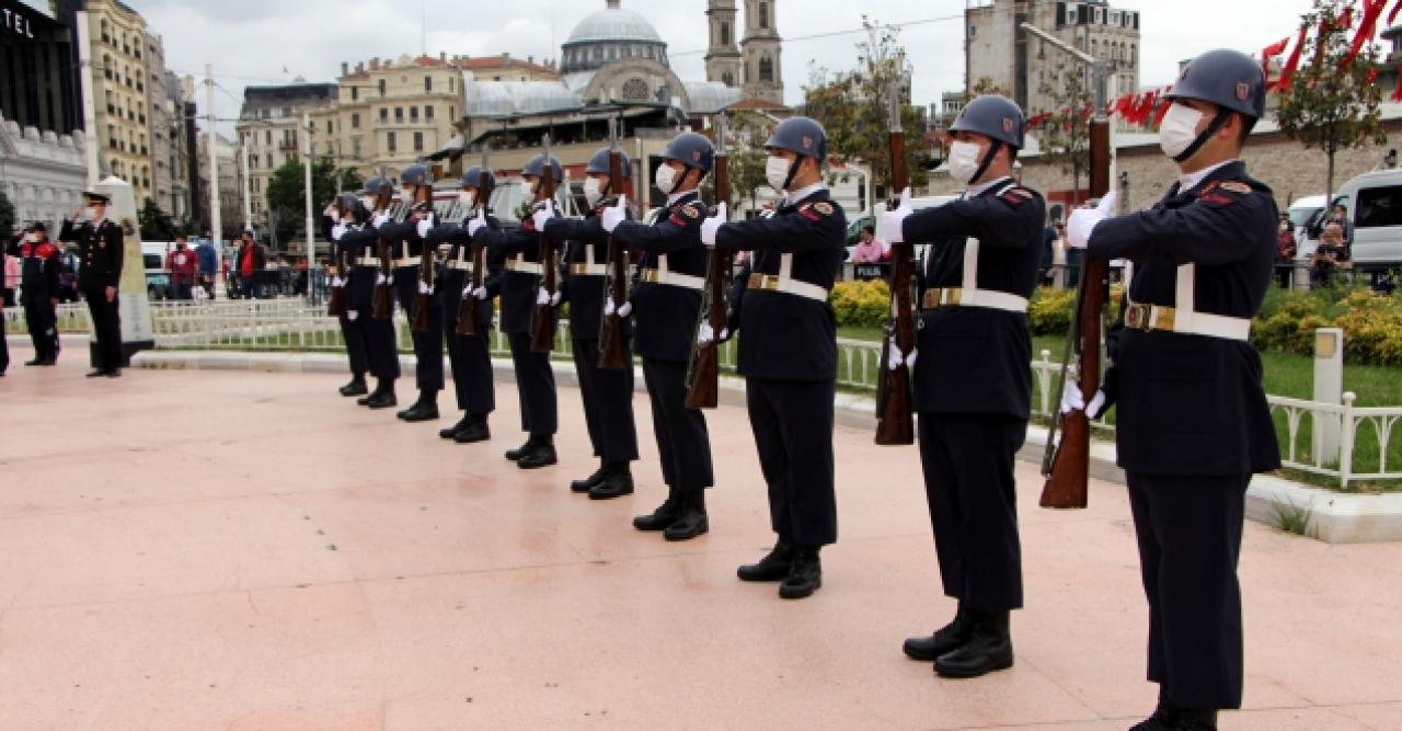 Taksim Cumhuriyet Anıtı'nda düzenlenen törene İstanbul İl Jandarma Komutanı Tuğgeneral Nuh Köroğlu ve İstanbul İl Jandarma Komutanlık personeli katıldı. Koronavirüs tedbirlerinin uygulandığı törende, Tuğgeneral Nuh Köroğlu tarafından Taksim Cumhuriyet Anıtı'na çelenk konuldu. Bir dakikalık saygı duruşu ve İstiklal Marşı'nın okunmasının ardından tören sona erdi. İstanbul İl Jandarma Komutanı Tuğgeneral Nuh Köroğlu, gazetecilerin yanına gelerek jandarma teşkilatının yanında oldukları için teşekkür etti. Tören sonunda toplu fotoğraf çekimi yapıldı.