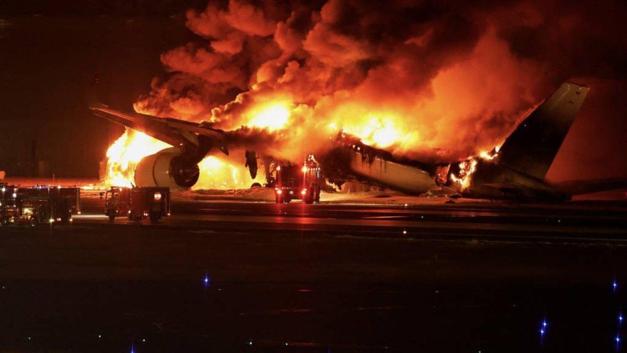 Tokya Henada Havalimanı'na iniş yapan Japon Air'e ait A350 tipi uçak pistte bulunan sahil güvenlik uçağına çarptı.