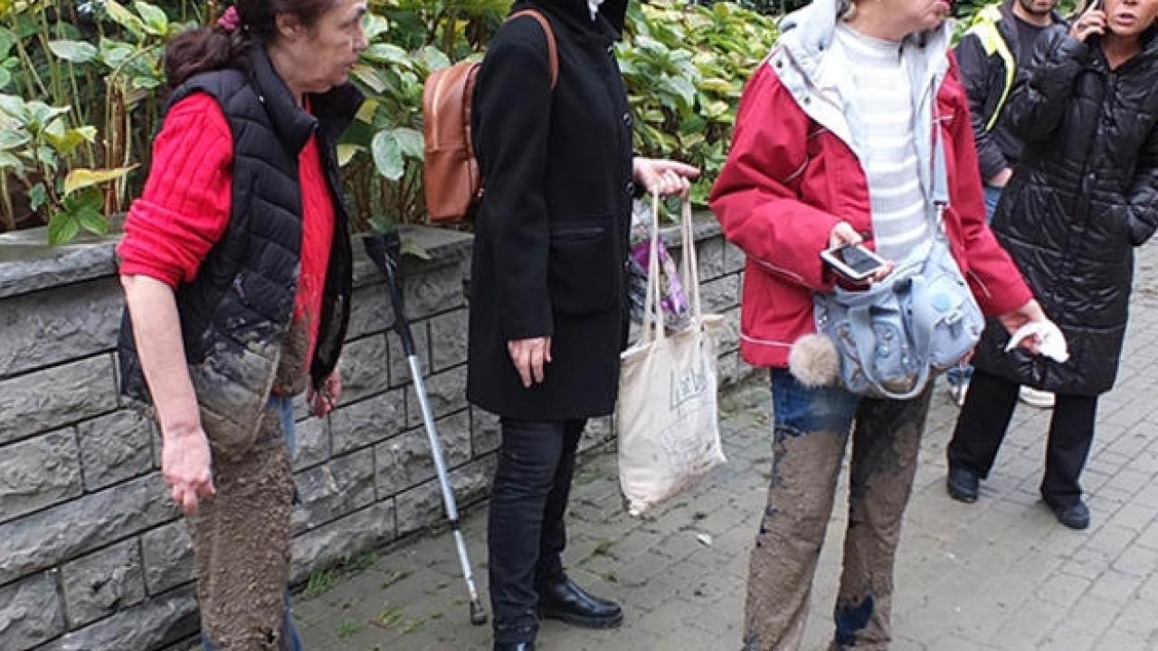 Kadınların yardımına çevredekiler koştu. Kadınlar betondan çıkarıldı. Yaşanan olayın şokunu yaşayan kadınlar bir süre yol kenarında bekledi.