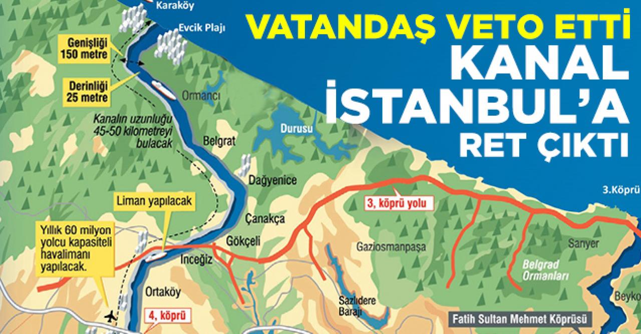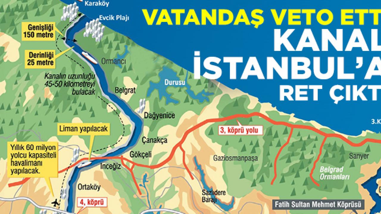İstanbul Büyükşehir Belediyesi'nin Kanal İstanbul'a ilişkin düzenlediği anket sonuçları açıklandı. Anket sonuçlarına göre vatandaşın yüzde 64,2'si Kanal İstanbul'un yapılmasına karşı çıktı. İstanbul'un acil sorununun Kanal olmadığını belirten vatandaşlara göre en önemli sorunlar; ‘yüzde 18,9 deprem, yüzde 19 susuzluk riskinin artması şeklinde. Kanal İstanbul’a harcanacak 100 milyar ile ‘İstanbul’un depreme dayanıksız yapı stokunun yenilenmesini isteyenler, yüzde 39; İstanbul’un başka sorunlarına öncelik verilmeli diyenler, yüzde 22,7 olurken, yüzde 33,6, kanalın gerekli olduğunu’ kaydetti.