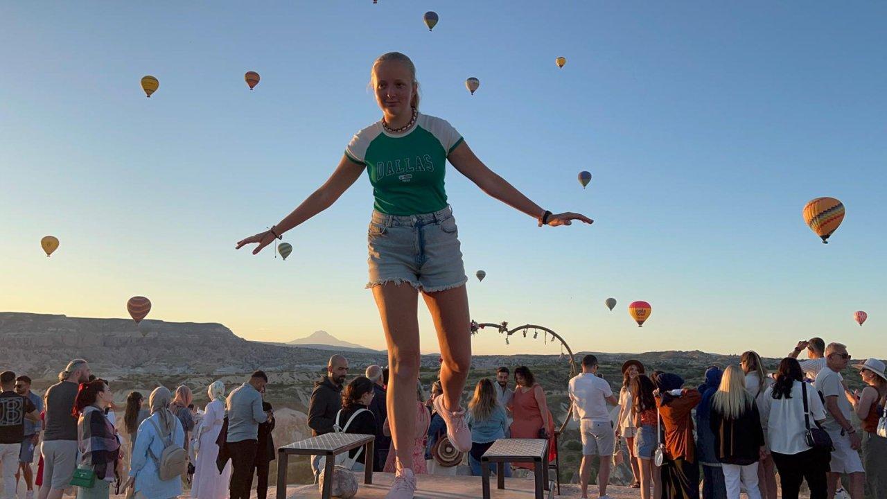Adana'dan bölgeye gelen Sıla Çağlar, "Bayramı Kapadokya'da geçirmek istedik. Kapadokya'da bu büyüleyici atmosferde bayramı geçirmek eşsiz bir deneyim oluyor. Gerçekten çok büyüleyici. Bence herkesin balona binmesi ve izlemesi gerekiyor. Biz şu an sadece izleyebiliyoruz" diye konuştu