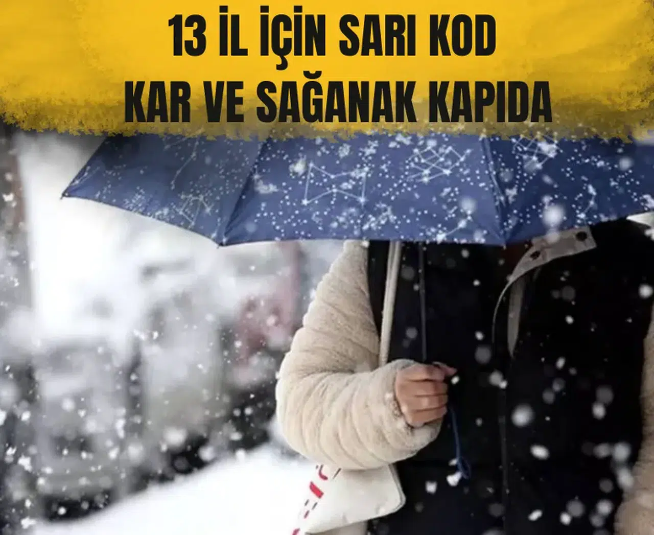 Meteoroloji Genel Müdürlüğü, kuvvetli yağış ve kar beklentisi nedeniyle 13 il için sarı kodlu uyarı yayımladı. Adana, Antalya, Osmaniye, Hatay, Batman, Siirt ve Diyarbakır’da kuvvetli sağanak yağış; Bingöl, Tunceli, Muş, Erzurum, Ağrı ve Bitlis’te ise kuvvetli kar yağışı beklendiği açıklandı.