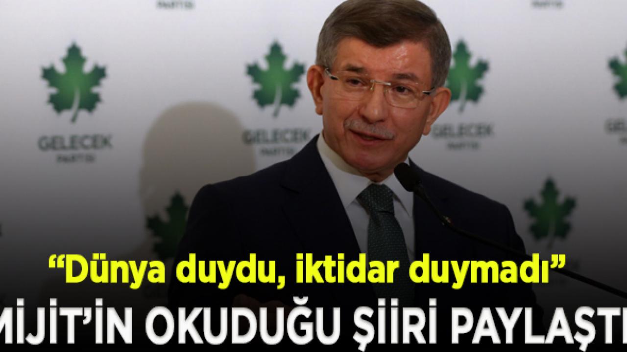 Gelecek Partisi Genel Başkanı Ahmet Davutoğlu da sosyal medya hesabından Mijit’in okuduğu şiiri alıntılayarak şu ifadeleri kullandı:
