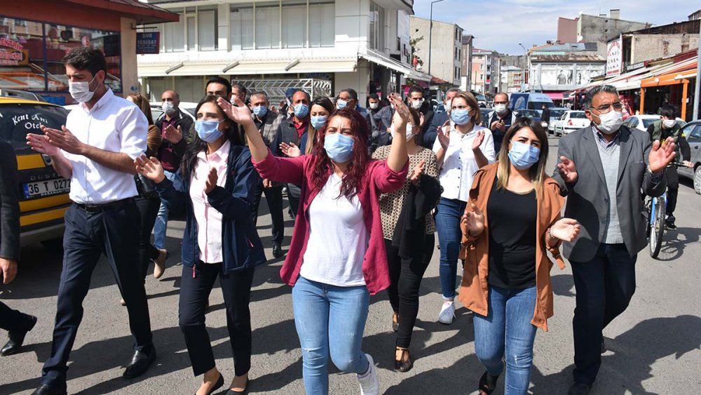 Kazım Karabekir Caddesi'nden yürüyüşe geçen partililer, Faikbey ve GAMP caddeleri üzerinden Kars Belediyesi önüne geldi. Burada 'Ayhan başkan yalnız değildir' sloganı atan grup, daha sonra Karadağ Caddesi üzerinden parti binasına geçti.