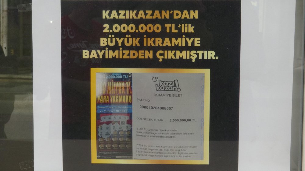 Arıkan, "Tanımadığımız bir genç arkadaş geldi. Kazı kazan satın aldı benden ve hemen yanımda kazıdı. Ardından '2 milyon lira ikramiye kazandım' dedi. Şaşırdım. İçimden 'Nasıl olur' diyerek, kartı alıp baktım. '2 milyon lira ikramiye kazandım' dediğinde önce 2 bin TL olarak anladığım için 'Biz bile öderiz bu parayı' dedim. Ama sonradan şans kartına baktığımda en büyük ikramiye olan 2 milyon lira çıktığını görünce, şaşkınlığım daha da arttı. Biz de gerekli işlemlerini yapıp, talihliyi bankaya yönlendirdik. Kendisini tanımıyorum ama bana Germencik'in Alangüllü Mahallesi'nden olduğunu söyledi. Bir daha da kendisiyle görüşmedik" dedi.