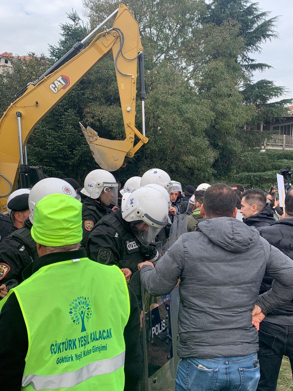 Göktürk Yeşil Kalsın Girişimi’nin (GYKG), kıyımın durdurulması için Orman Bölge Şefliği’ne yaptığı başvuru ise, “Özel mülk bir şey yapamayız” denerek reddedildi. Şantiyede bir protesto eylemi düzenleyen GYKG Gönüllüleri ilgili bakanlık ve belediyelere çağrıda bulunarak bu kıyıma engel olunmasını talep ettiler GYKG eş sözcüsü Gülseren Onanç, “Her gün yeni bir talan ve hukuksuzluk ile karşılaşıyoruz. Devam eden davalar ve yürütmeyi durdurma kararlarına karşın inşaat faaliyetleri devam ediyor. Maalesef Kemerköy'e çok yazık oluyor, bir çevre katliamı yaşanıyr. Şimdi de bir bölümü yüz yaşını aşmış anıt ağaç olan ağaçlarımıza göz diktiler” dedi.