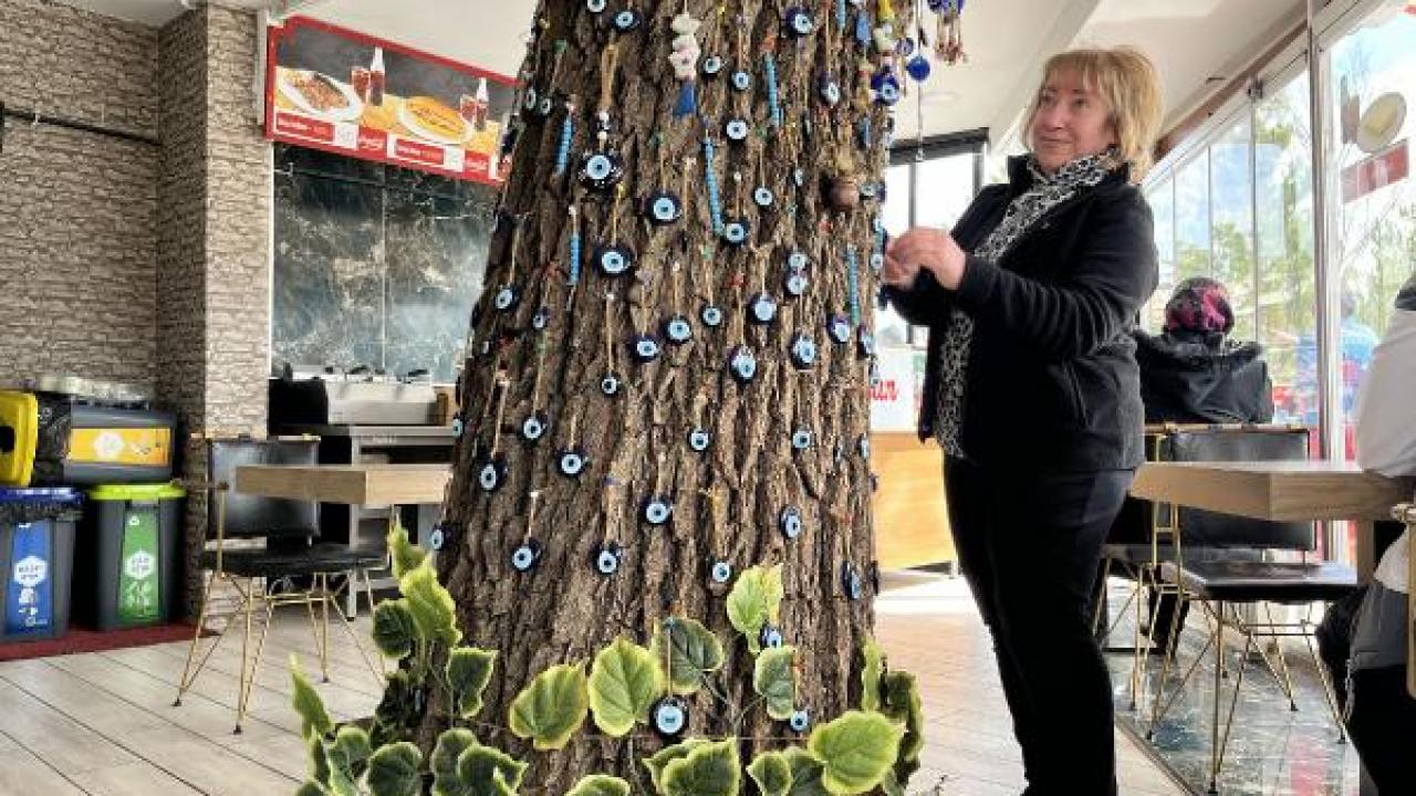 Sivas Cumhuriyet Üniversitesi Tıp Fakültesi Hastanesi poliklinik binası önündeki kafeyi 4 yıl önce devralan Esnaf Hilal Tan, gerekli izinleri alarak iş yerini genişletmeye karar verdi. Tan, üniversitenin kuruluş zamanlarında dikildiği tahmin edilen ve genişletilecek alan içinde kalan salkım söğüt ağacının kesilmesine ise razı olmadı. Ağacı da kafesinin içerisine dahil ederek farklı bir konsept oluşturdu. Nazar boncukları ve mini saatlerle süslenen ağaç, müşterilerin de ilgisini çekiyor.