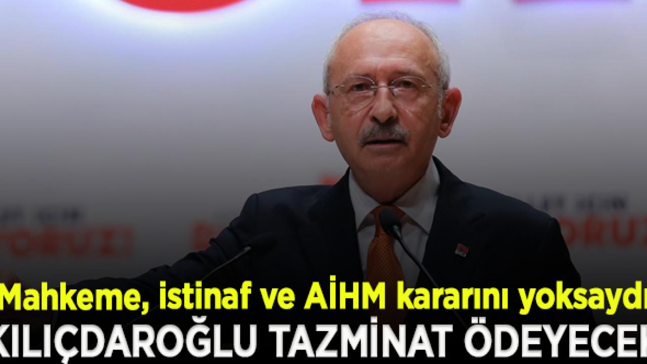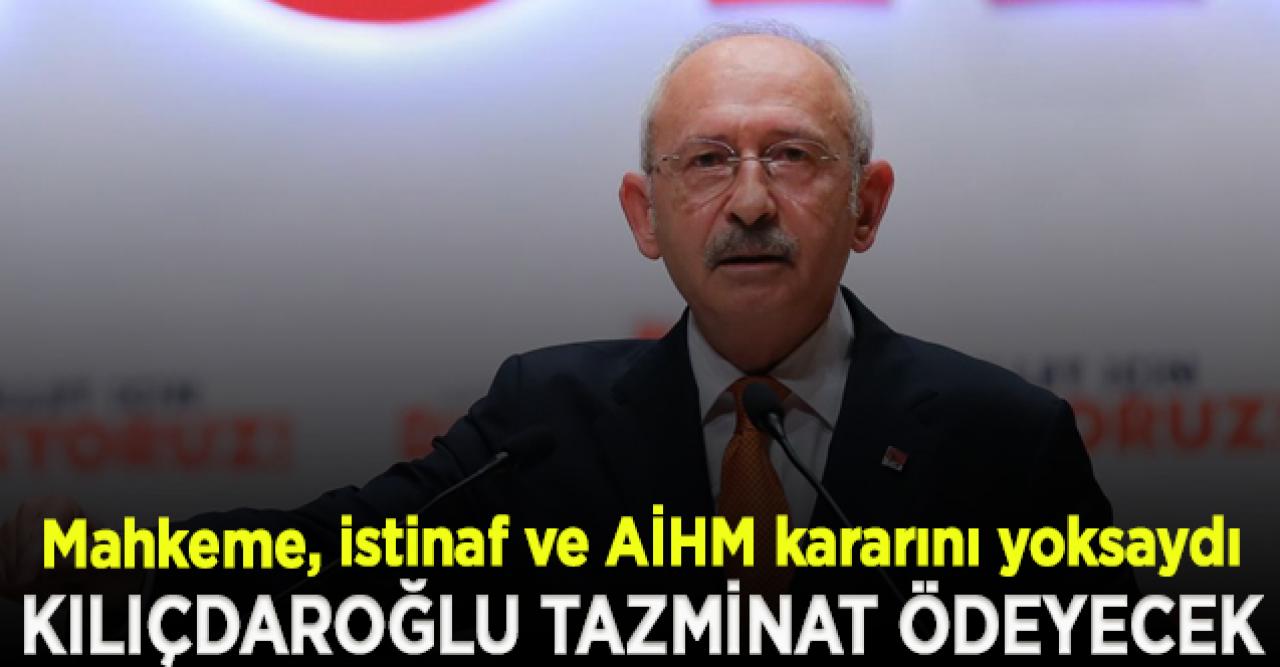 Cumhurbaşkanı ve AK Parti Genel Başkanı Recep Tayyip Erdoğan'ın, 4 ayrı konuşması nedeniyle CHP lideri Kemal Kılıçdaroğlu aleyhine açtığı toplam 650 bin TL’lik 3 ayrı tazminat davası, reddi hakim talebi ve istinaf mahkemesi kararına rağmen Ankara 6. Asliye Hukuk Mahkemesi’nde kısmen kabul edildi. Mahkeme, AİHM’nin Kılıçdaroğlu hakkında “olgusal dayanakları bulunan eleştirileri hakkında, tazminat kararına hükmedilemeyeceği” kararı aldığı anımsatılmasına rağmen, Erdoğan’ın istemini kısmen kabul ederek toplam 70 bin TL tazminata hükmetti. AİHM, incelediği Kılıçdaroğlu kararında kendisine verilen 5 bin TL tazminatın dahi fahiş olduğu kararını almıştı.