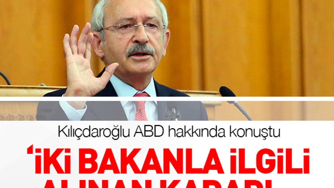 CHP Lideri Kemal Kılıçdaroğlu, ABD'nin Türkiye'ye karşı aldığı yaptırım kararıyla ilgili açıklamalarda bulundu. Kılıçdaroğlu, "Bir sorun varsa oturulur konuşulur. İki bakanla ilgili alınan kararı doğru bulmuyoruz. Amerika'daki iki bakanla ilgili aynı karar alınmalı" dedi.