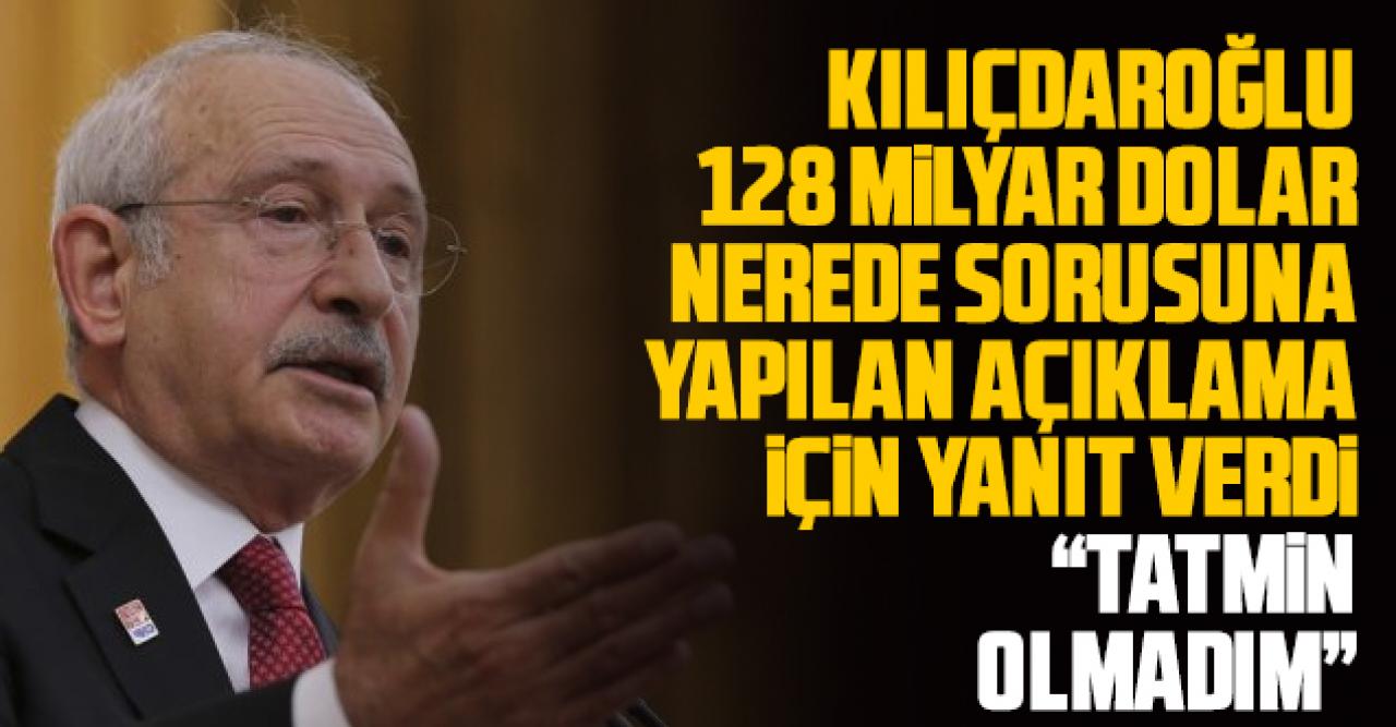 CHP Genel Başkanı Kemal Kılıçdaroğlu, Merkez Bankası Başkanı Şahap Kavcıoğlu’nun 128 milyar dolarla ilgili açıklamalarına ilişkin, “Tatmin olmadım” dedi.