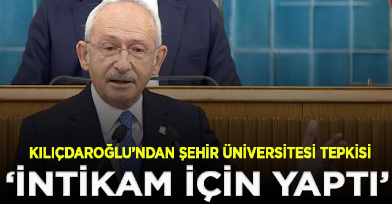 CHP Genel Başkanı Kemal Kılıçdaroğlu, partisinin TBMM'deki grup toplantısında gündeme ilişkin önemli açıklamalarda bulundu. İstanbul Şehir Üniversitesi'nin kapatılmasına tepki gösteren Kılıçdaroğlu, bunun bir intikam olduğunu söyledi.