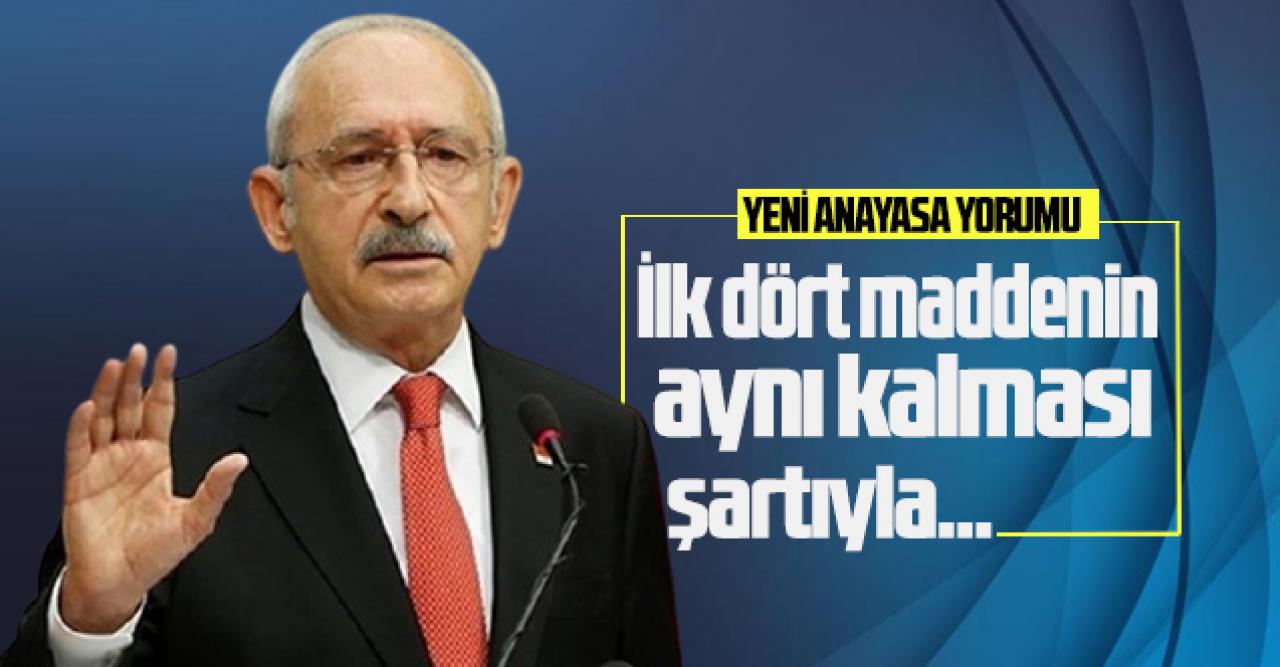 Kılıçdaroğlu, gazeteci-yazar Murat Yetkin'e konuştu. "Cumhurbaşkanı Erdoğan Türkiye’nin yeni bir Anayasa vaktinin geldiğini söyledi. Bugüne kadar bir tepkiniz olmadı. Ne düşünüyorsunuz bu konuda?" sorusuna Kılıçdaroğlu, "Bugün Türkiye’de demokrasiden yana olan herkes, 'Türkiye’nin demokratik yeni bir Anayasaya ihtiyacı var' diyor. Tabii mevcut Anayasanın ilk dört maddesinin aynı kalması kaydıyla… Yeni bir Anayasayla Türkiye, demokratik standartlarını daha ileriye taşımalıdır, buna ihtiyacımız var. İhtiyacımız, 'Güçlendirilmiş Parlamenter Sistem'dir.” yanıtını verdi.