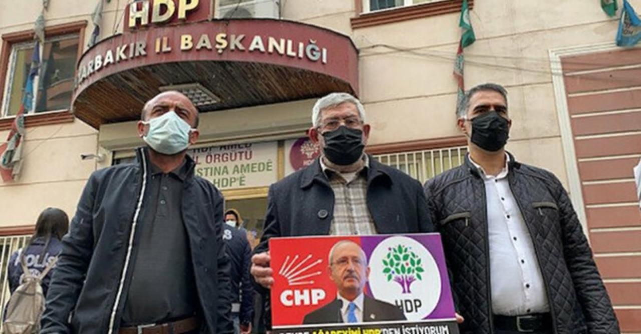 CHP Genel Başkanı Kemal Kılıçdaroğlu'nun kardeşi Milli Beka Hareketi Genel Başkan Yardımcısı Celal Kılıçdaroğlu, elinde "Ben de ağabeyimi HDP'den istiyorum" pankartıyla Diyarbakır HDP il binası önündeki eyleme katıldı.