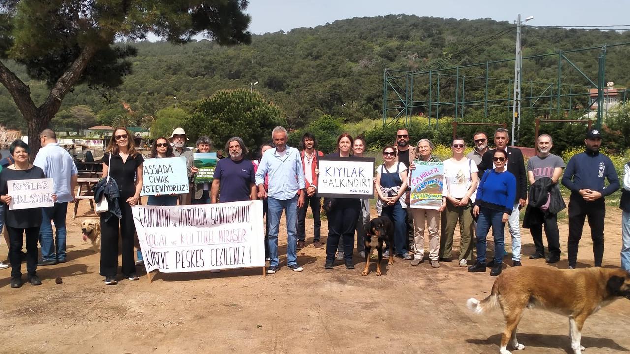 TAYLAN DAŞDÖĞEN- Heybeliada’da bulunan Çam Limanı Koyu’nda halkın ve ziyaretçilerin ücretsiz olarak denize girdiği alanın Adalar Kaymakamlığı kararıyla halka kapatılarak Diyanet İşleri Başkanlığına devredilmek istenmesine karşı eylem yapıldı. Çam Limanı Koyu’nda toplanan Heybeliada halkı, “Kıyılar halkındır” dedi. Çam Limanı’nda biraraya gelen Heybeliada halkı, “Kıyılar halkındır”, “Sahiller Hepimizin” dövizleri taşıyarak yaptıkları bir açıklamayla Adalar Kaymakamlığı’nın, Çam Limanı ile ilgili Heybeliadalıların ve ada ziyaretçilerinin hak ve hukukunu çiğneyen son kararını protesto etti. Eylemde, kararın iptali istendi.