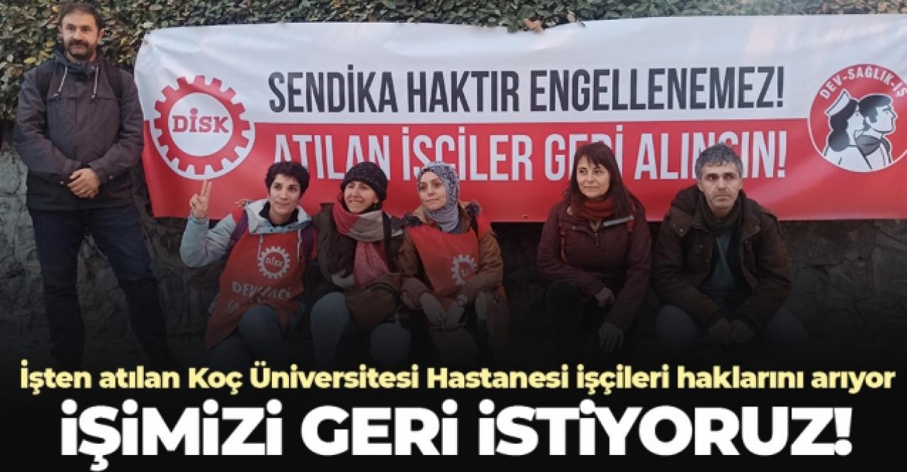 DİSK'e bağlı Dev Sağlık-İş'e üye olduktan sonra işten atılan Koç Üniversitesi Hastanesi işçileri hastane önünde oturma eylemi başlattı. Her gün 14.00 ile 18.00 arası hastane önünde olan işçiler, işlerine iade edilmeyi, sendikal haklarının tanınmasını, tacizci müdür hakkında işlem yapılmasını istiyor. Evrensel'in haberine göre; Koç Üniversitesi Hastanesinde 300’ün üzerinde taşerona bağlı çalışan temizlik işçisi var. Bu işçiler Euroserve adlı taşeron şirkete bağlı çalışıyorlar. Kadrolu işçiler ile aralarında ciddi hak ve ücret farkı olan işçilerin sendikalaşması da tacize ses çıkarması da yasak. Kasım ayı içerisinde sendikalaştıkları için işten atılan ardından yaptıkları basın açıklamasıyla işe iadelerini talep eden işçilerin bu talepleri karşılanmadı. Hastane önünde oturma eylemi başlatan Dev Sağlık-İş üyesi işten atılan Koç Üniversitesi Hastanesi işçileri talepleri kabul edilene kadar eylemlere devam edeceklerini söylüyor. Yaklaşık 6 yıldır Koç Üniversitesi Hastanesinde çalışan işten atılan işçi Suna, “Biz taşerona bağlıyız taşeronda çalışıyoruz ama bizim asıl işverenimiz Koç" diyor. Hastanede ciddi sorunlar olduğunu baskı ve mobbinge maruz kaldıklarını anlatan Suna, “Su içmek nedir ya su bile içemiyoruz, sürekli koşturmamız isteniyor. Bir günde 6 defa düşer mi insan? Öyle bir koşturmaca var ki yetişmeye çalışıyorsun ayağın kayıyor düşüyorsun bir günde 6 defa yere kapaklandım. Nefes almadan çalışmamız isteniyor” ifadelerini kullanıyor.