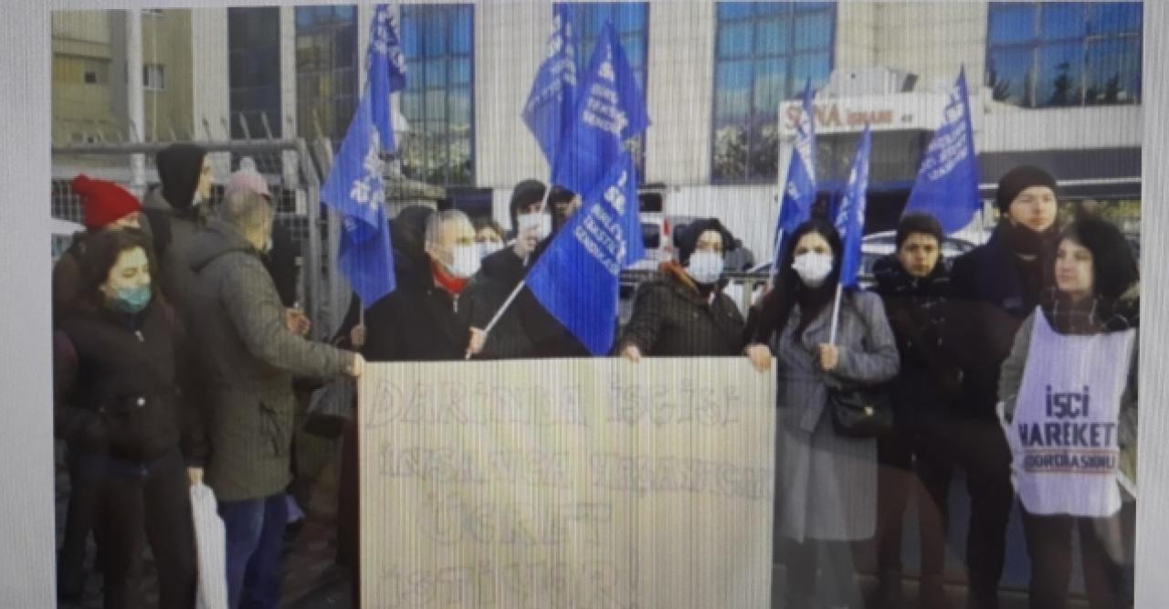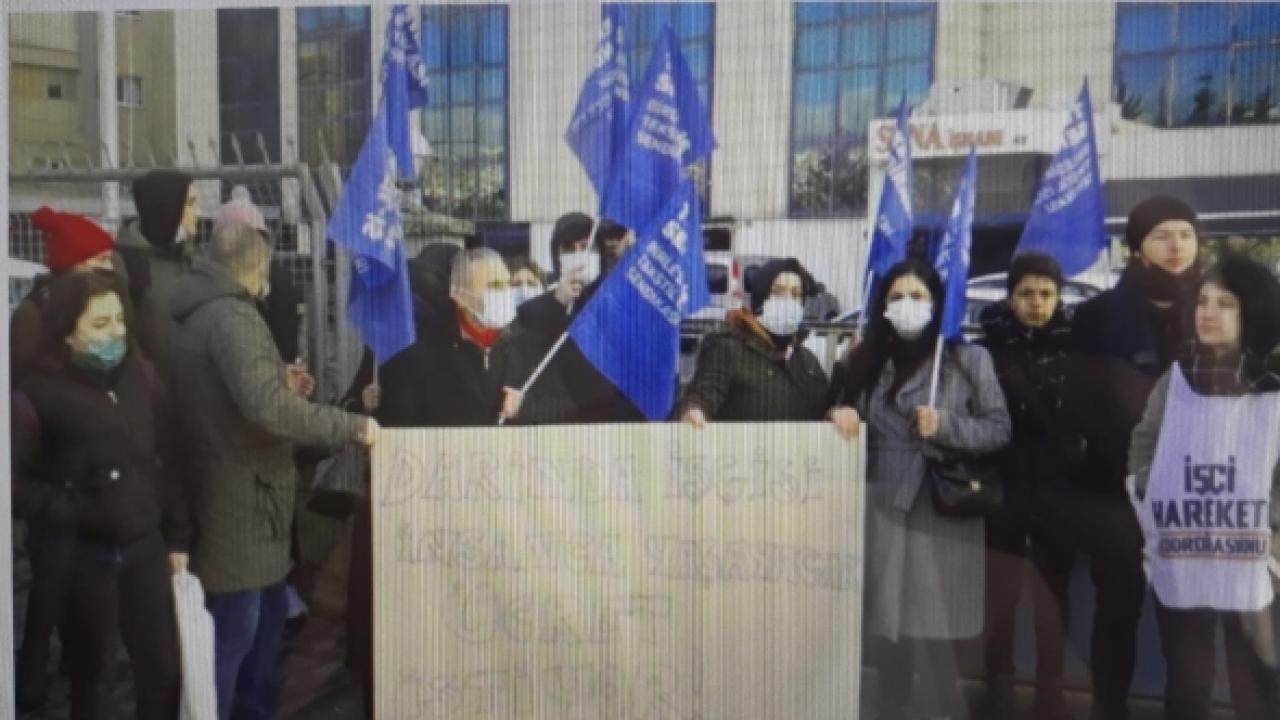 Darinda Çorap işçileri, dün sabah fabrika önünde bir araya gelerek açıklama yaptı. "Zam istedik, hakkımızı istedik. Üstüne bizi işten çıkardılar. Bizim çıkışımızı verdiler. Yarın işe gelmeyin, gelirseniz polis eşliğinde sizi buradan göndereceğiz dediler. Bizi mağdur ettiler" diyen işçiler, "Direneceğiz, buradayız, gitmiyoruz" ifadelerini kullandı. İşçi Hareketi Koordinasyonu adına konuşan Nurseli Gözüaçık, "İşçilerin emeğinden başka geçinebildiği hiçbir şey yok. Darinda Çorap işçileri işten atarak kazandığını sanıyor ancak o işler o kadar kolay olmayacak" dedi. İşverenle görüşmelerin sürdüğü belirtildi. İşçiler, "Masa başında çalışan kadın işçilere en az 6 bin TL maaş. Ütücü işçilere en az 6 bin 500 TL maaş" maaş talebinde bulundu