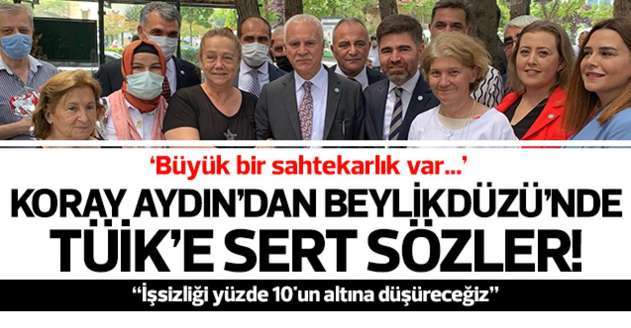 Türkiye'nin işsizlik sorununa değinen Aydın, Türkiye İstatistik Kurumu’nun eziklik içerisinde olduğunu belirterek, "Türkiye’de işsizlik problemi, üzerine şal örtülen, gizlenmeye çalışılan, iktidarın pek göstermek istemediği bir alandır. Şuanda TÜİK verilerine bakarsak yüzde 27 civarında bir genç işsiz var. Bu tabi ki gerçek bir rakam değil. TÜİK'in bu işleri yaparken, işini doğru yapamamanın ezikliği içerisinde olduğunu görüyoruz. Öyle emir alıp, öyle davranıyorlar. Çünkü iş aramaktan vazgeçenler diye bir fasıl açtılar, işsizlerin önemli bir kısmını oraya attılar. TÜİK’in açıkladığı hiçbir rakama güvenmiyorum. Orada dönen sahtekârlıkları biliyorum. Üretici fiyat endeksinin yüzde 38,8’ini açıkladılar, tüketici fiyat endeksini de yüzde 16.59 açıkladılar. Böyle bir şey olabilir mi? Gerçek enflasyon oranını şalla örtüyorlar" eleştirisinde bulundu.