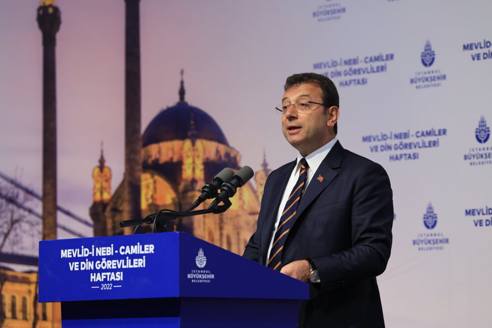 İBB Başkanı Ekrem İmamoğlu, ‘Camiler ve Din Görevlileri Haftası’ kapsamında bir araya geldiği din görevlilerine, “Tıpkı Peygamberimizin Medine’de farklı kesimleri bir araya toplayıp, toplumsal bir sözleşme etrafında buluşturması gibi, din görevlilerimizin bugünkü ağır sorumluluğu da toplumsal kutuplaşmaları sakinleştirmek ve toplumun her kesimini kucaklamaktır” sözleriyle seslendi