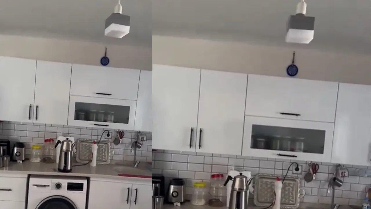 Bir evde depreme yakalanan vatandaş, deprem anlarını saniye saniye cep telefonu kamerasıyla kaydetti.
